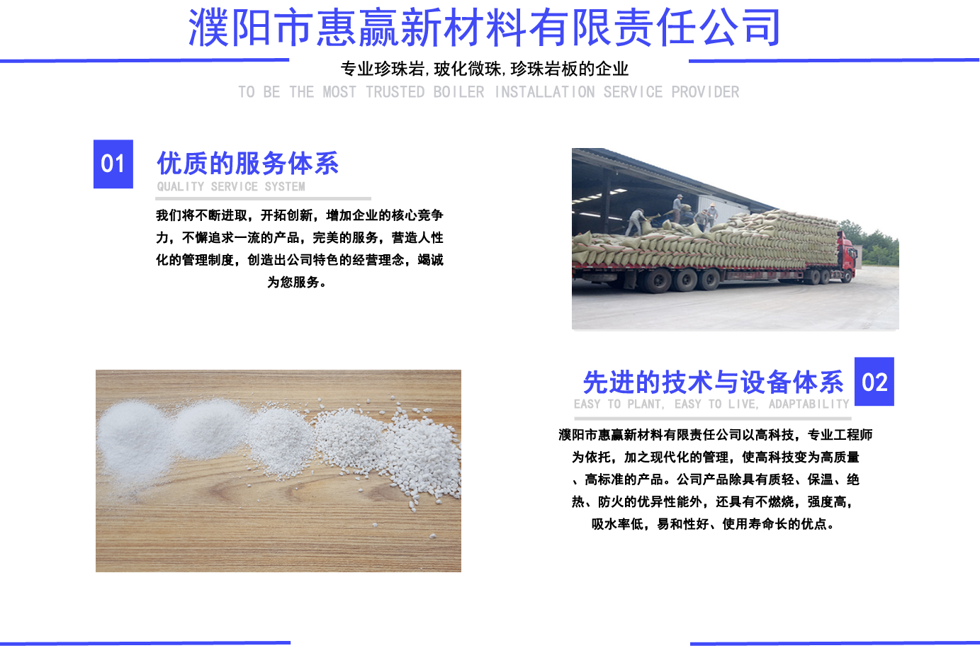 珍珠巖,?;⒅?玻化微珠保溫砂漿, 珍珠巖板,憎水珍珠巖,憎水型珍珠巖, 憎水型膨脹珍珠巖, 膨脹珍珠巖,珠光砂-濮陽市惠贏新材料有限責(zé)任公司 公司簡介/ ABOUT